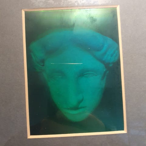 Selve hologram har bredde på 10 cm og høyde på 5 cm.