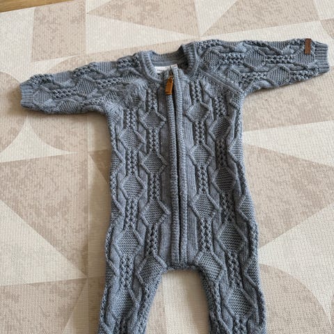 Ser ingen hull eller flekker. Det er en tråd på fremsiden som har delt seg (se bilde). Ellers er det noen løse tråder på innsiden som ikke synes på utsiden. Har noen nupper som lett kan fjernes.