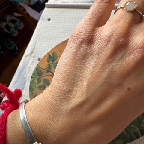 Glatt sølv på en halvdel og mønstret bladgull på andre halvdel
