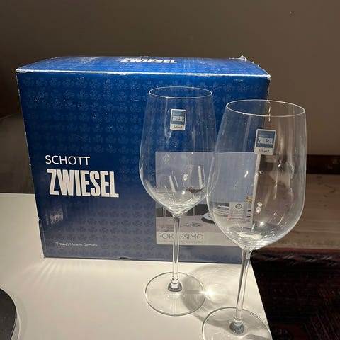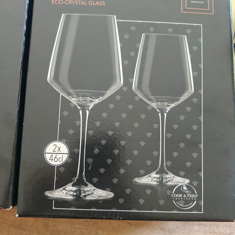 Glassene er nye, fremdeles i esken sin. De rommer 46 cl og er 19 cm høye.