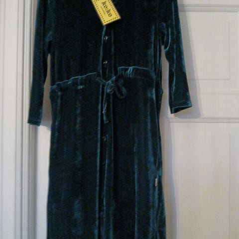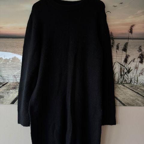 Petroleumsblå strikket, lett ullkjole. Noe bruksspor, se bilder
