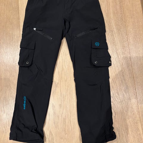 Pent brukt, borrelås stramming nede, borrelås stramming for livviddejustering, knapp og glidelås lukking i livet.