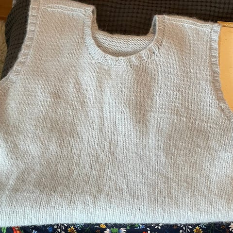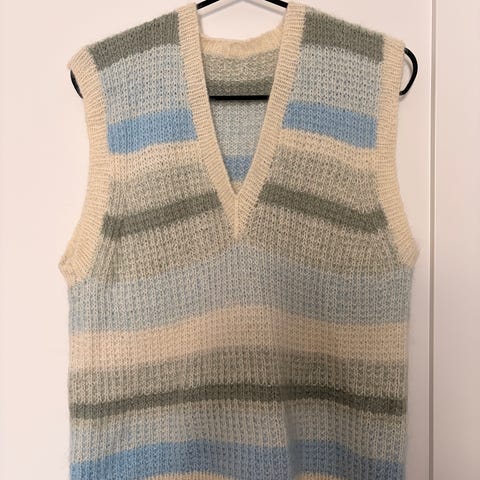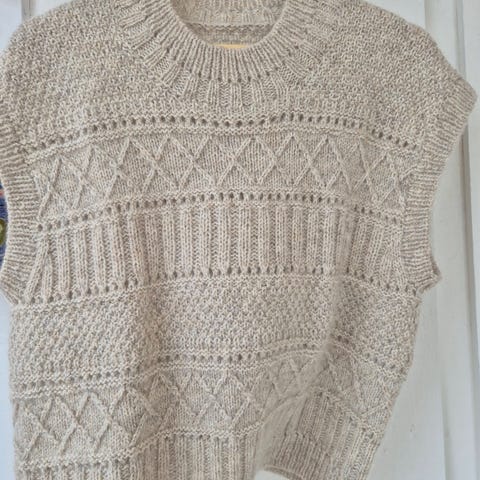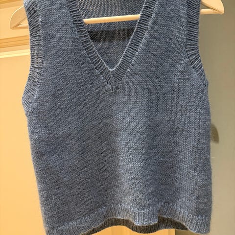 Stockholm slipover (Petiteknit) strikket i Sunday fra Sandnes Garn og Tynn Silk Mohair fra Sandnes Garn, selges pga størrelsen.
