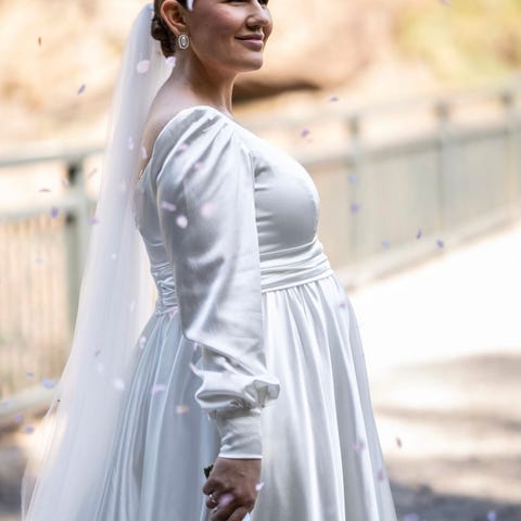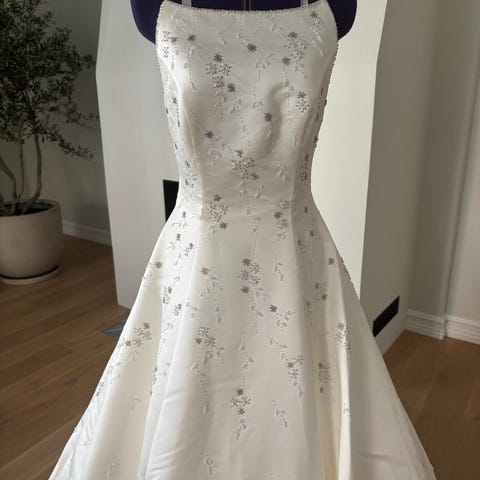 Nypris: 23 000kr. Kjolen er sydd inn noen cm i ryggen. Pent brukt 1 gang. Renset på renseri. Selger også med sløret om det ønskes:))