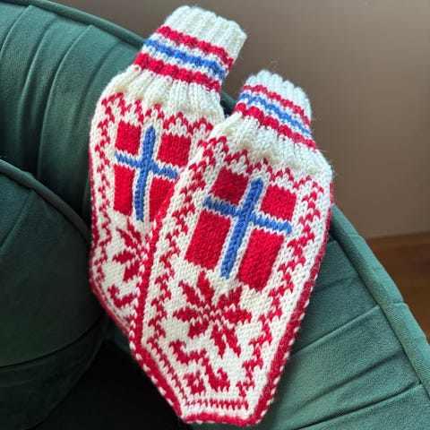 Norsk flagg skjerf med lommer i hvit