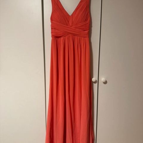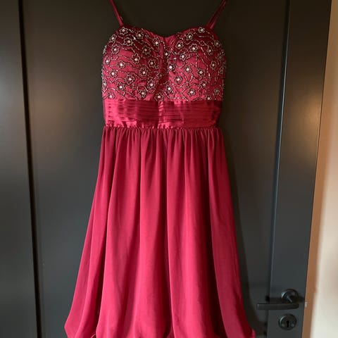 Pen kjole med perlebroderier på brystpartiet. Det står str 10 i kjolen , men vil si det er S/M. Den er kjøpt hos Floyd, brukt en gang. Selges med sjal og veske. Kan sende.