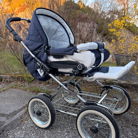 Bag delen kan settes på gulvet som reiseseng og har vippefunksjon. Romsligere vogn enn mange andre nyere modeller.
