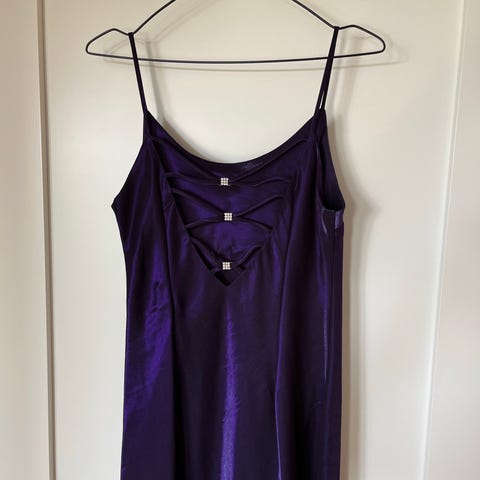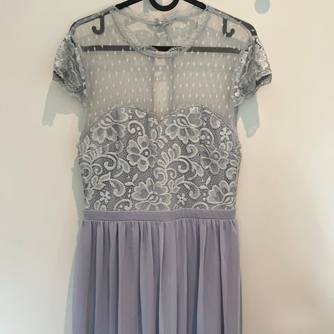 Nydelig lang kjole brukt 1 gang i bryllup. Så fin rosa farge! Det er noen løse tråder foran på kjolen, disse er avbildet. Men ikke veldig synlige. Ellers veldig behagelig med super fine detaljer! Tynn i stoffet. Kan sendes.