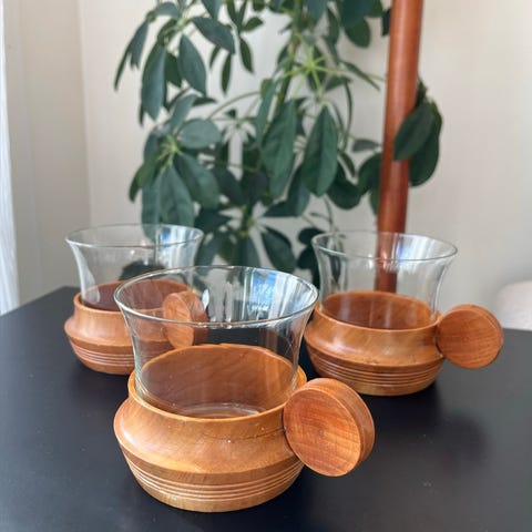 🌺Vintage stil brikker i tre til glass/krus etc.