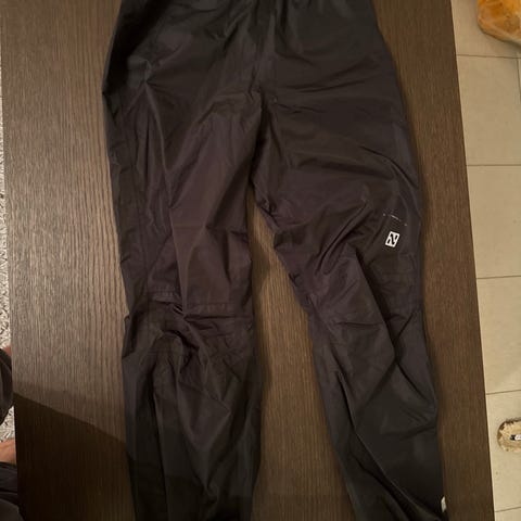 Fin svart overtrekksbukse / skallbukse / turbukse i str 140. NB! Det er et bittlite hull på innsiden av det ene låret, se bilde.