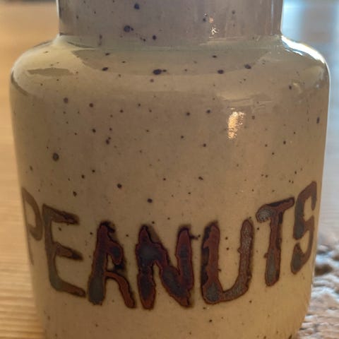 Vintage krukke for peanøtter i keramikk.