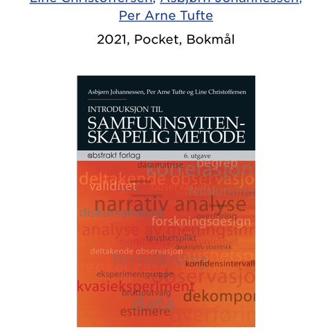 Introduksjon til samfunnsvitenskapelig metode. 350 kr