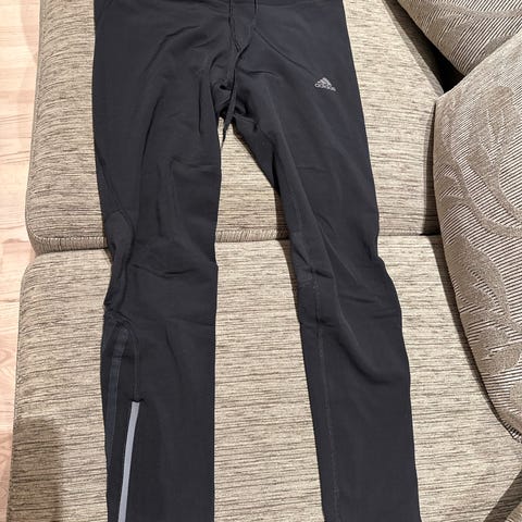Strikk i midjen, dekroative sømmer på siden og logo på ene benet. Kun prøvd, strørrelse small.