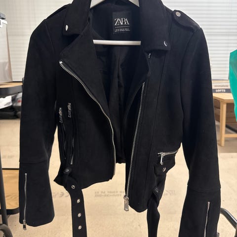 Pent brukt semsket skinnjakke (faux) fra Zara vurdere solgt. Str XS.
