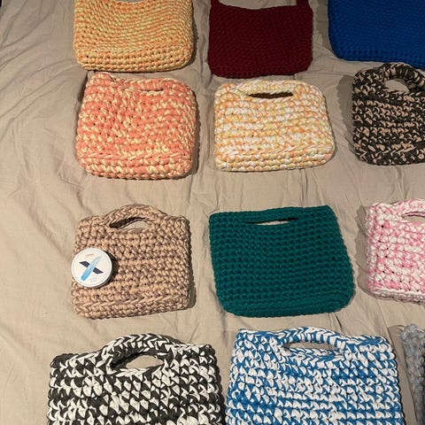 Handlenett heklet i tykt bomullsgarn. Forsterket i bunnen. Størrelse 32x31 cm. Stroppene gir godt rom for å ha nettet over skulderen.