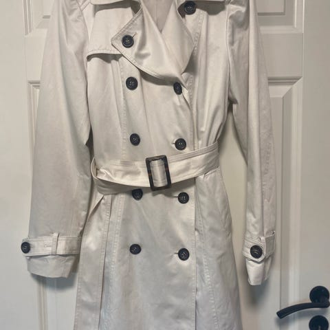 utrolig fin trenchcoat fra Donna, strl L, selges da den ikke blir brukt. Har litt tykkelse og er fin til høst/vår vær.