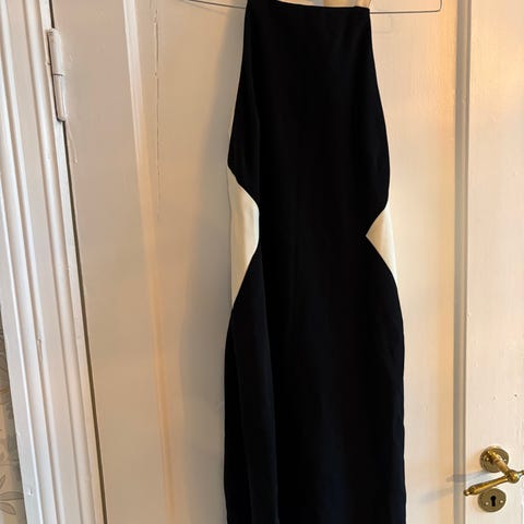 Et flott klassisk sett fra designmerke ISIS (" Ice Cube by Michael"). Består av en kort kjole og en lang blazer/jakke i samme lengde som kjolen. Mørkblå/marineblå.