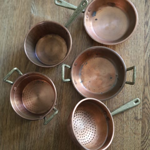 Pent brukt, kjele og stekepanne i kobber fra Polaris. Blir veldig pent om det pusses med kobbboer/messing puss.