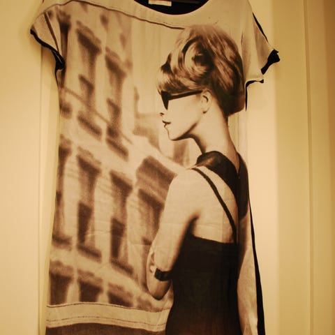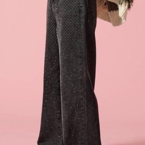 Sort knelang figursydd kjole med litt stretch. Perler/ Stener rundt halslinning. (Audrey Hepburn kjole, den lille sorte)