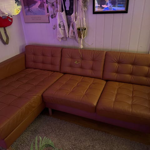 Landskrona hjørnesofa i skinn selges