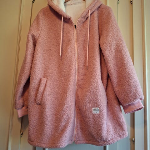 Myk teddyfrakk i kamelfarge – str. Xxl