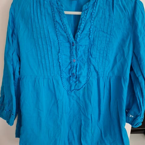 Nydelig bluse, tynn/turkis str 34 selges kr 65,- pluss frakt