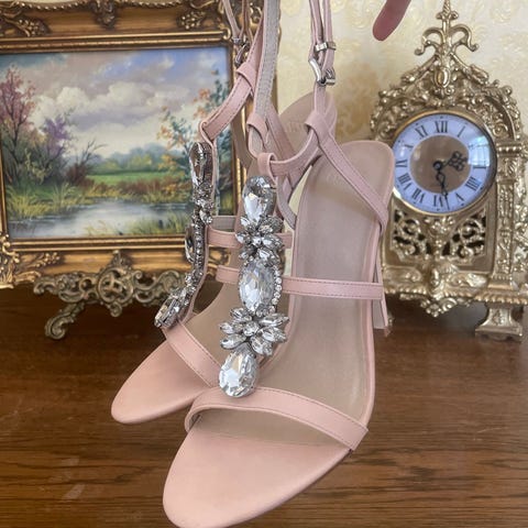 Disse høye hælene i beige skinn er designet for damer og kommer i størrelse 37. Skoene har en klassisk stil med en spiss tå og en elegant hæl. De er ideelle for både formelle og uformelle anledninger.