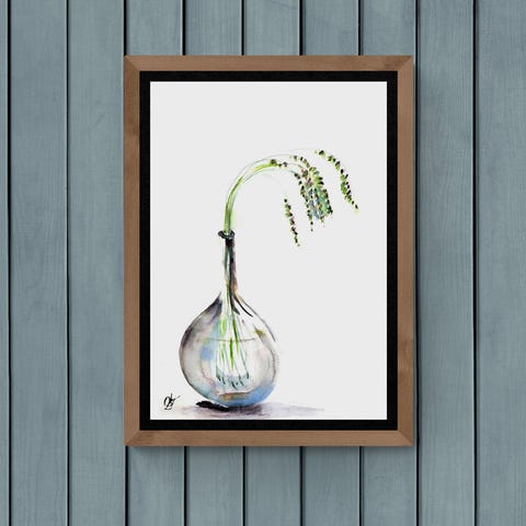 Kunstrykk original akvareller vase høst interiør bilde botanikk tørke planter