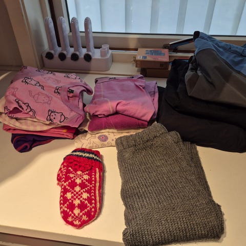 2 hals, 1 skjerf, 2 vinterhansker, 1 lue og 2 pannebånd