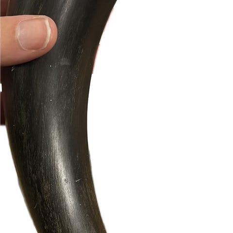 Originalt seilmakerhorn. 1800-tall. Med både nål og rester av fett bevart. I fin stand. Sjelden!