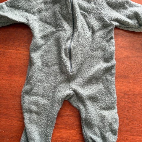 Go dress i 100% ull- med glidelås, og overtrekk over føtter og hender. Fin «kjøredress» på høst/vinter som ikke blir for voldsom i bilstol.