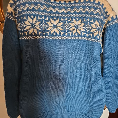Jeg selger en helt ubrukt, varm og god håndstrikket genser. Str. L/XL.
