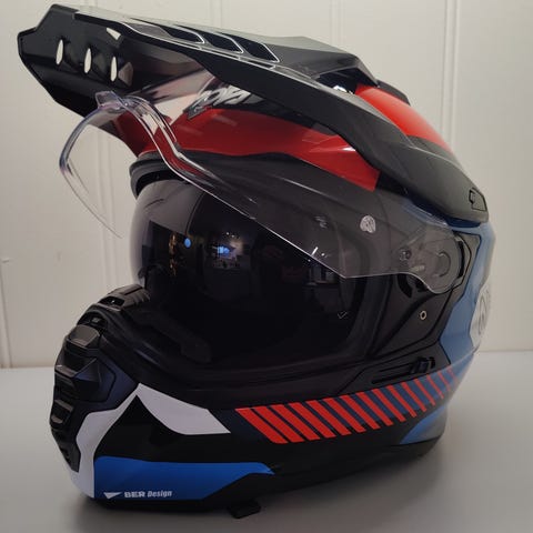Fin og praktisk hjelm til mc, atv o.l. Avtagbart visir som også kan justeres i flere hakk.