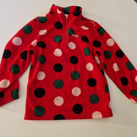 Varm, yttertøy-genser med glidelås. Teddy-fleece. Rød, hvit og blå. Størrelse 2XX smal (2-3 år)