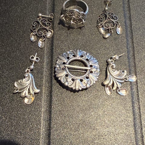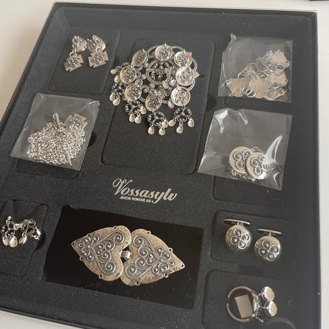 Rogaland bunadsølv ubrukt selges. Vossasølv. Ny pris butikk for hele settet over kr. 27000, selges for min kr. 20000. Har også brodert bunadstoff til konfirmant veske, sjal,og forstykke. Pris kan evt. Diskuteres. Ta kontakt på DM.