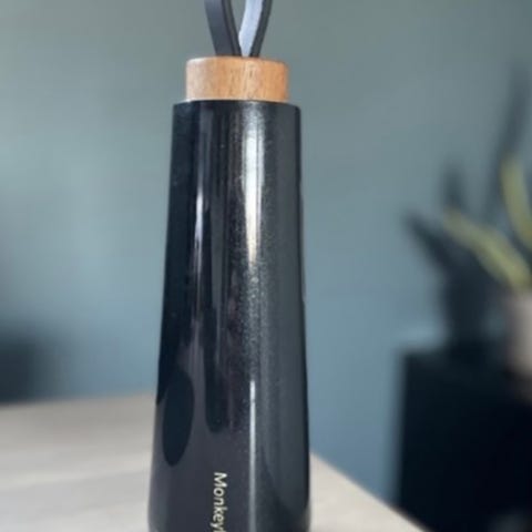 Den har en liten sil i lokkdelen, som gjør at frukt og ol holdes igjen i flasken.