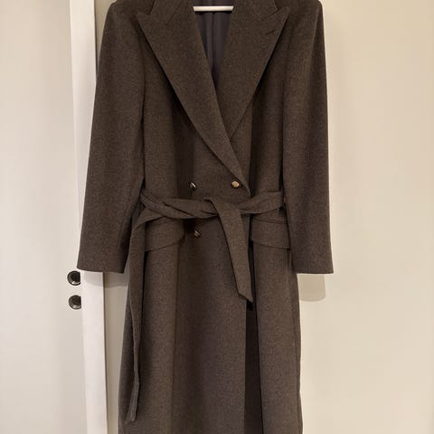 En utrolig lekker kåpe med klassisk sort/hvit mønster. Laget i 100% ull. Kåpen er helt ny, ubrukt, da den kun har blitt tatt bilder av. Oversized passform med markerte skuldre.