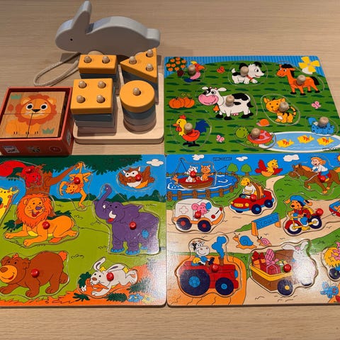4 puslespill i tre for små barn.