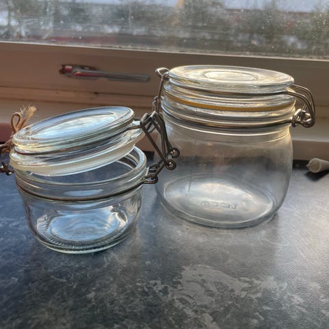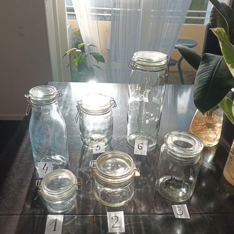 2 store 2 liten pent brukte glass krukker selges samlet for 300kr.