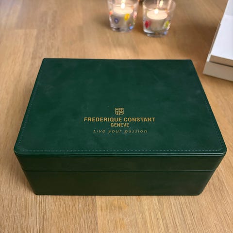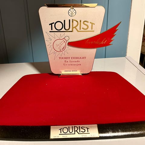 Sjelden sak som har ligget i skuff siden 80 tallet, om ikke lenger. Er litt usikker på hvor mye denne faktisk har gått. Om det er en som har ligget på lager hele tiden (NOS) eller om den har vært brukt som ny fra 60 tallet. Den har vært med på flere flyttelass siden og har noen småriper i glasset og noen små skjønnhetsfeil. Den tikker og går men jeg har ikke trukket den opp mer enn en halv runde. Da tikker den og går ganske lenge. Jeg har gjort det noen ganger gjennom årene. Verket er ikke tuklet med av ufaglærte men jeg åpnet den for andre gang nå kun for å ta bilder.