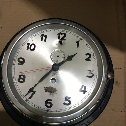 #klokke #8-dagers #opptrekk #manuell #analog #gangreserve #ur #stål #rustfritt #dashbord #marin #veteran #60-tall #60s