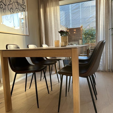 Stabil og solid ramme: Spisestoler er støttet av forkrommet metallramme og kryssben, og er eksepsjonelt stabil.