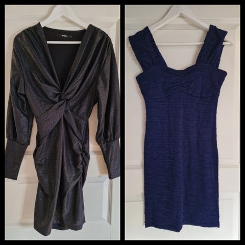 kjoler, den lille sorte og en blå med lange armer Str S