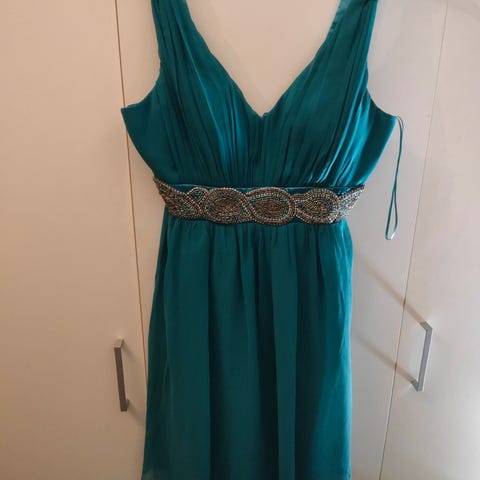 Blågrønn kort selskapskjole/ballkjole