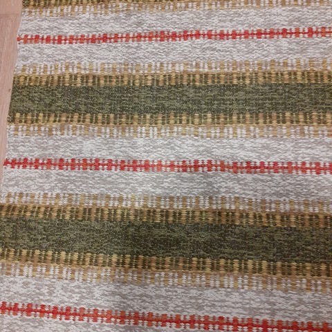 Vakkert teppe i skilbragd i nydelige farger i brunt og rust. Det er min mor, Liv Rosenvinge, som har vevd teppet, Hun vevde aktivt på 1980- og 90-tallet. Teppet er ubrukt og har ligget sammenrullet i et skap i et røykfritt hus. Det følger ikke stenger/beslag med teppet, så det er enkelt å sende. Teppet kan henges på veggen, legges på et bord eller brukes som et lite teppe i sofakroken, feks om man syr på et bakstykke. Etter min mening kan teppet like godt brukes på vrangen - det er kjempefint og gir et annet uttrykk. Det er bare å ta kontakt om noen vil ha bilder med mer detaljer. Jeg har også annonser for flere tepper.