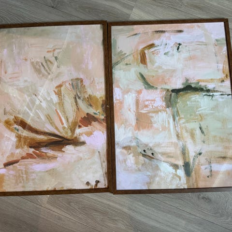 To pene bilder i sølvfarget ramme. Ingen skader. 33cm x33cm.