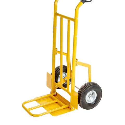 Sveiset stålrørskonstruksjon med kulelagrede luftgummihjul. Den nedfellbare rampen i kombinasjon med lastebøyler gir høy lasteevne for f.eks vedtransport. Maks. belastning 180 kg. Størr. eks. rampe/lastebøyle 112x57x29 cm, størr. lastebøyler 88x28x40 cm. Vekt totalt ca. 17 kg.