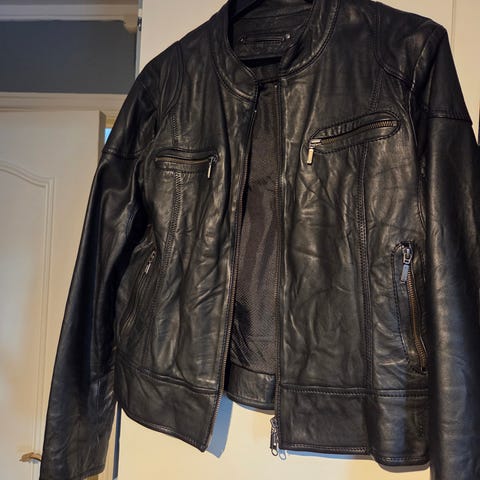 Tøff skinnjakke I det mykeste lammeskinn. Kan sendes men frakt vil komme i tillegg.