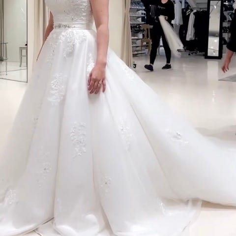 Perfekt til å bruke over tettsittende kjoler for å få 2-i-1 effekt Skjørtet ble brukt under vielsen og fotograferingen. Selges for 3500kr.