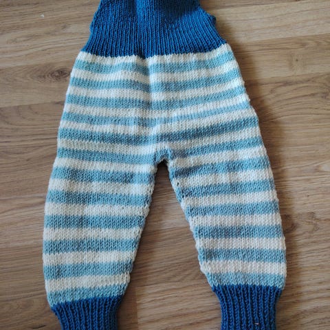 Ny, hjemmestrikket selebukse i myk merinoull (Viking merino, farge: sand).